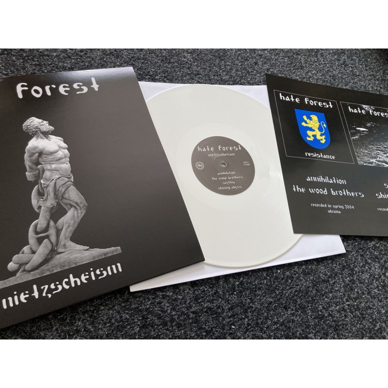Together with the famous “Scythia” demo/album from 1999, these songs show utterly barbaric and primordial black hateful metal with a certain monotony through intense blasting aggression and its vocal delivery. Essential material with the pure cold and unhuman black metal full of the classic Hate Forest rage. Originally released on CD by Supernal Music, now available on vinyl LP again since the original press in 2009 on Primitive Reaction. One low quantity pressing on white vinyl, out now.