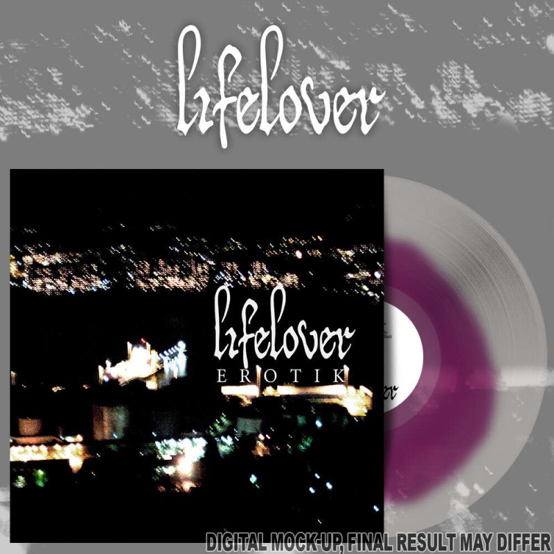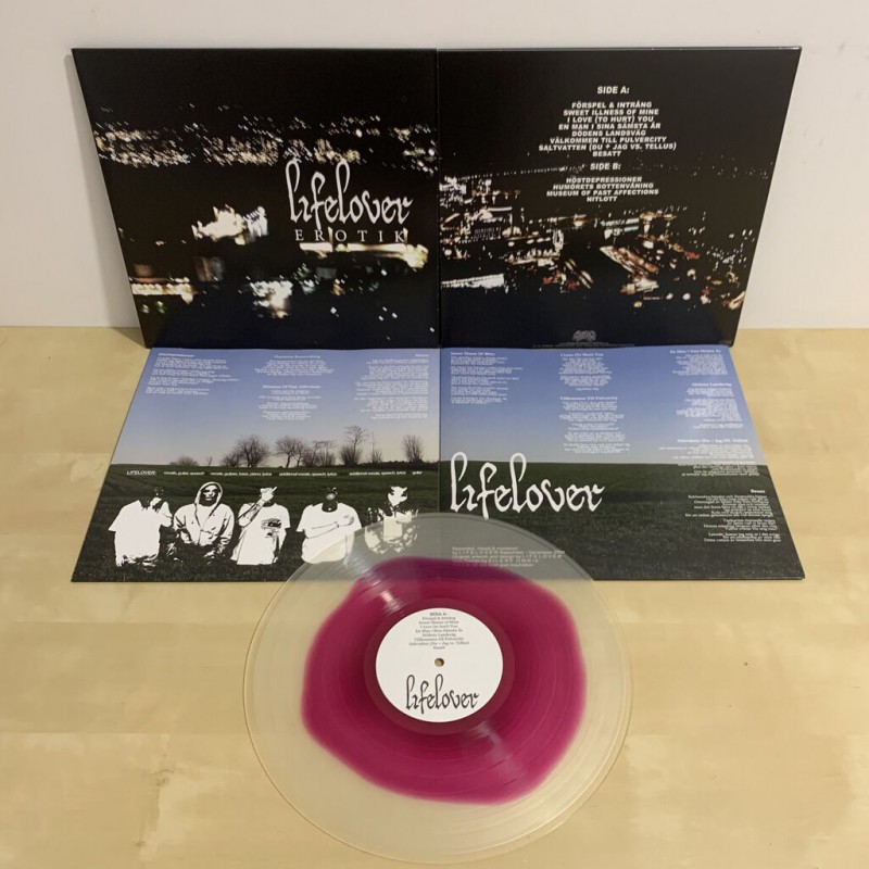 700x transparent purple in milky clear 12" (140g) in a microtene innerbag, printed innersleeve full-color on 220g, jacket full-color on 350g, all assembled in a PVC overbag.