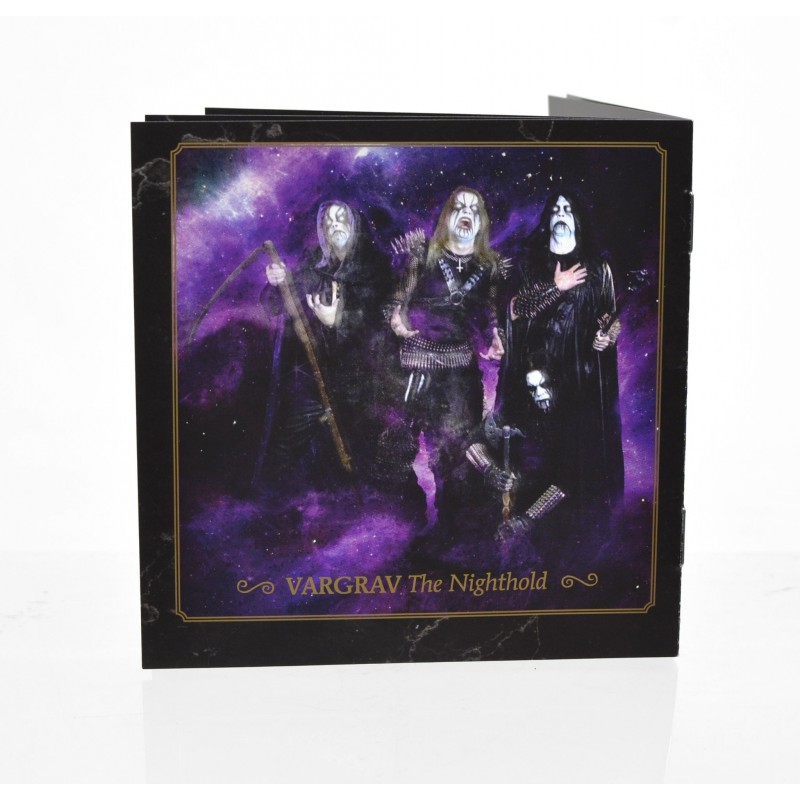 As momentous as those two full-lengths have been, VARGRAV arguably eclipse both with their third album, The Nighthold. With a lineup that now includes the notorious Graf Werwolf von Armageddon on vocals and Moonsorrow members Trollhorn of the Black Harvest on guitars/bass and Baron M. Tarwonen on drums, VARGRAV's swirling, cosmic surge has never been more potent; their attack is both sharper and dreamier, crystal-clear and opaque simultaneously. That added clarity creates more immediacy as The Nighthold kicks in, for the aggression of old is kicked into overdrive here and the synths take on a truly orchestral aspect. It's not for nothing that the album is a full hour in length: everything here sounds (and feels) HUGE, one massive velvety purple landscape of stained-glass visions as far as the third eye can see. And all 12 tracks are threaded together in a plausibly cinematic manner; while each is mighty in its own respective right, VARGRAV sequence every song with artistic flair and high drama, concluding the immersive experience with a daresay-soulful guitar solo during the coda of "Creator of the True Realm" that then segues into the nearly-10-minute big-screen instrumental "Ghostlands." What film or filmic realm one enters into (or leaves) is entirely up to the listener...The Nighthold is boundless!